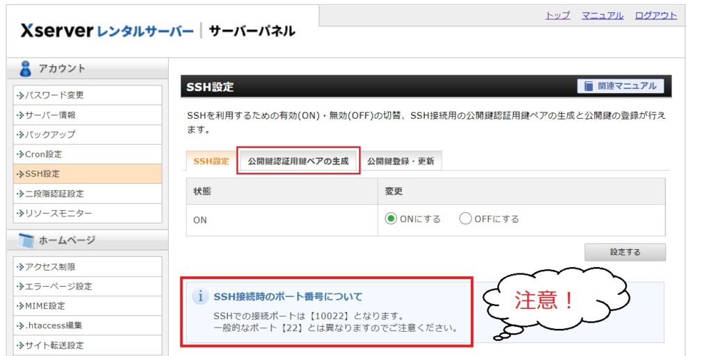 エックスサーバーでは公開鍵認証方式を取っているので、登録する必要があります。