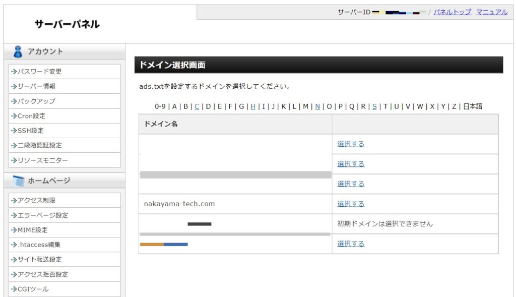※弊社の場合は「nakayama-tech.com」なので、それを選択しました