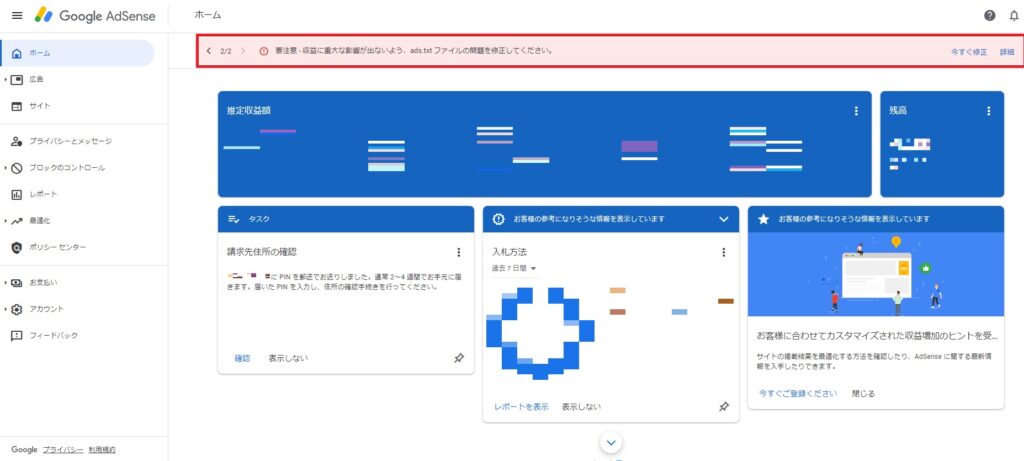 または、既に利用されていてads.txtの警告が表示されている方だと思います。