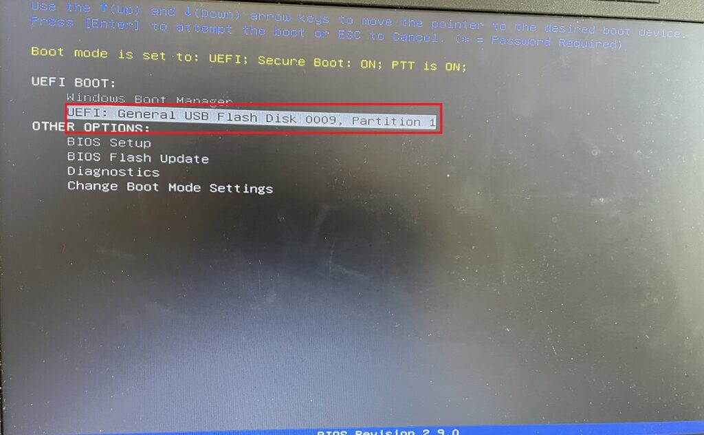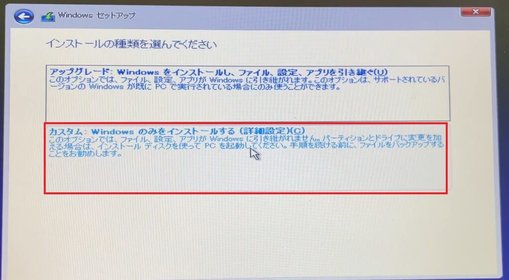 するとインストール画面が出てくるので、USBからインストールする系の選択肢を選びます。