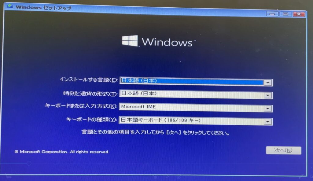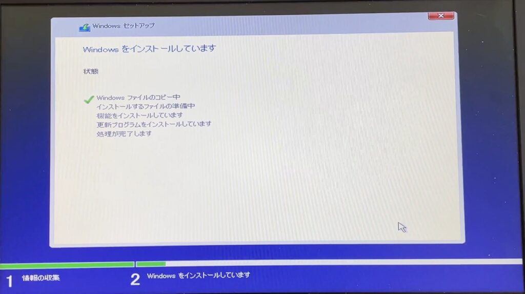 設定が完了したらWindowsのインストールが開始できます(早い!)