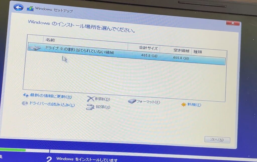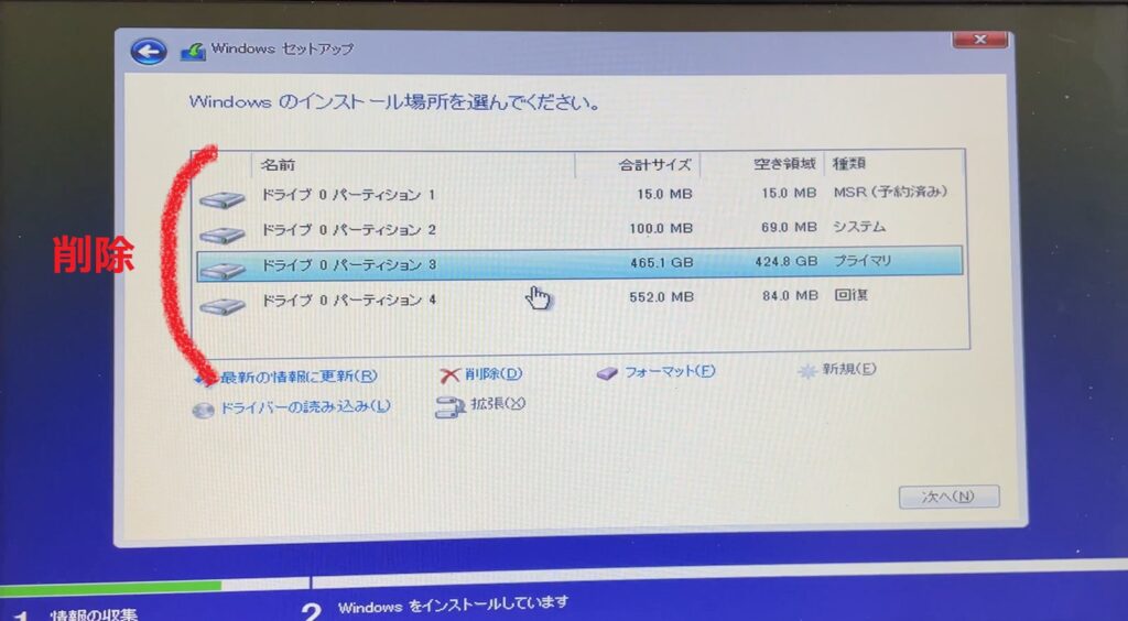 これにより、パーティションを削除して0からドライブを作り直すことが可能です。