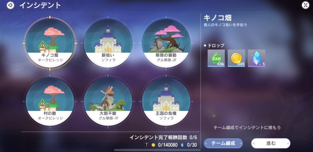 勲章をもらったら花精霊の突破のための素材「含霊の石」を集めます。