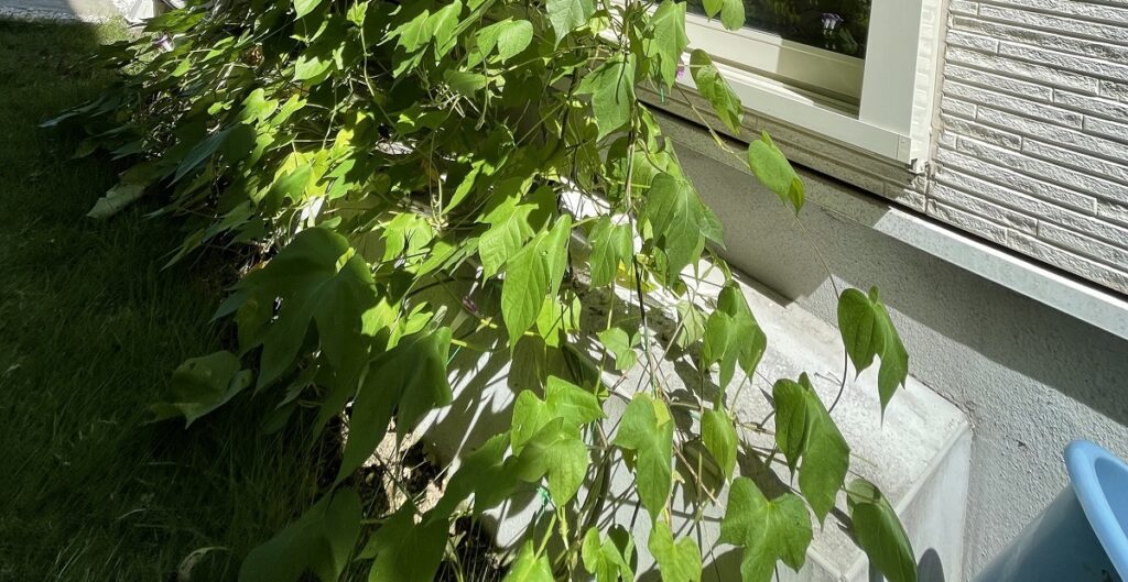 微妙な角度ではありますが、朝顔の左側にある影の部分が芝となっております。