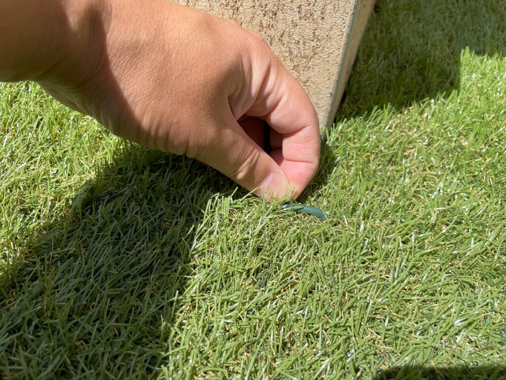 ある程度釘を打ったら芝が中に入り込むので、上に引っ張るのがコツです。