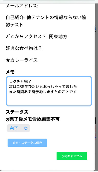 また、予約フォームが変わっても過去予約したデータは当時の状況で確認できます。