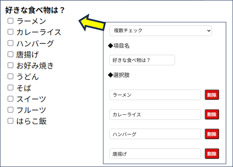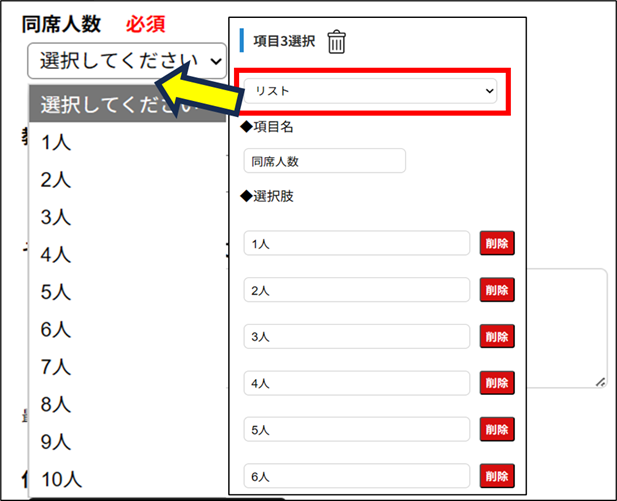 項目と選択肢はリストと同様で、1個~最大10個まで入力可能です。